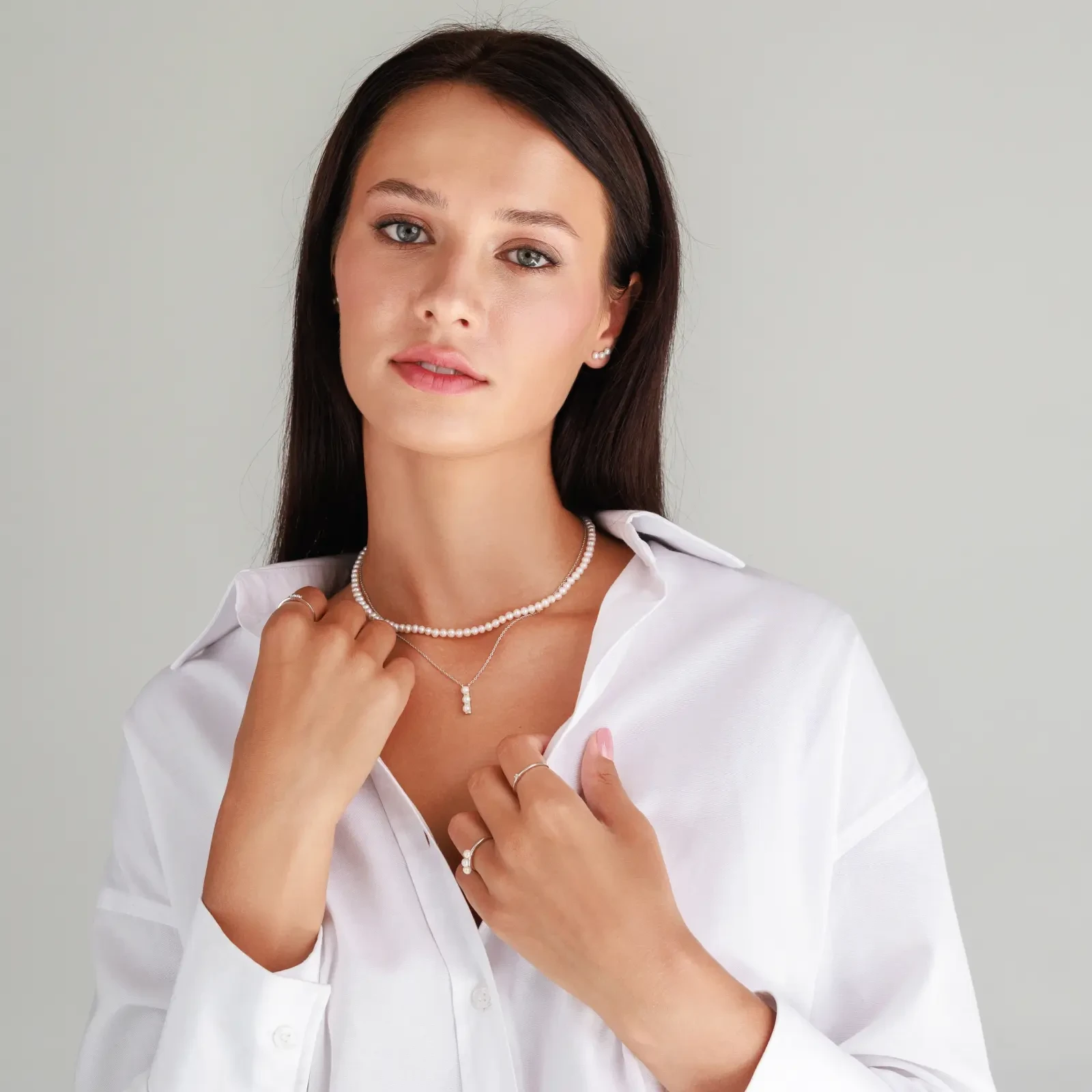 Embrace elegance with Gaura’s finely crafted ladies’ necklace. Freshwater pearls exude sophistication, complemented by rhodium-plated 925 sterling silver for a timeless touch. Effortlessly light at 11.6g, this necklace offers comfort without compromising style, perfect for any occasion.