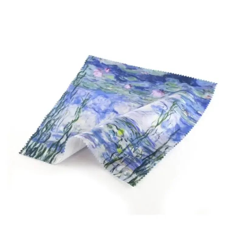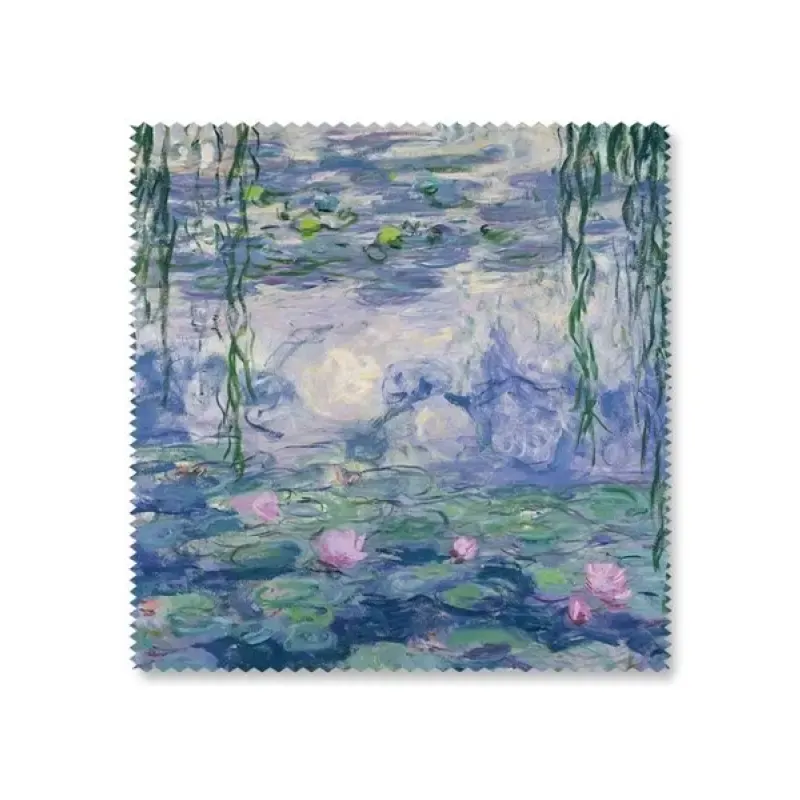 A multifunctional microfiber cloth featuring Monet’s Waterlilies design, measuring 15 × 15 cm. Ideal for cleaning glasses, camera lenses, screens, jewelry, and more, it provides streak-free results without scratching delicate surfaces. Washable at 30°C for repeated use, it combines everyday practicality with timeless artistic charm.