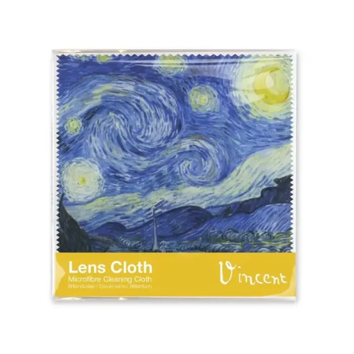 A multifunctional microfiber cloth featuring Van Gogh’s iconic Starry Night design, sized 15 × 15 cm. Perfect for cleaning glasses, camera lenses, screens, jewelry, and more, it provides streak-free results without scratching. Washable at 30°C for long-term use, it blends everyday practicality with classic artistic charm.