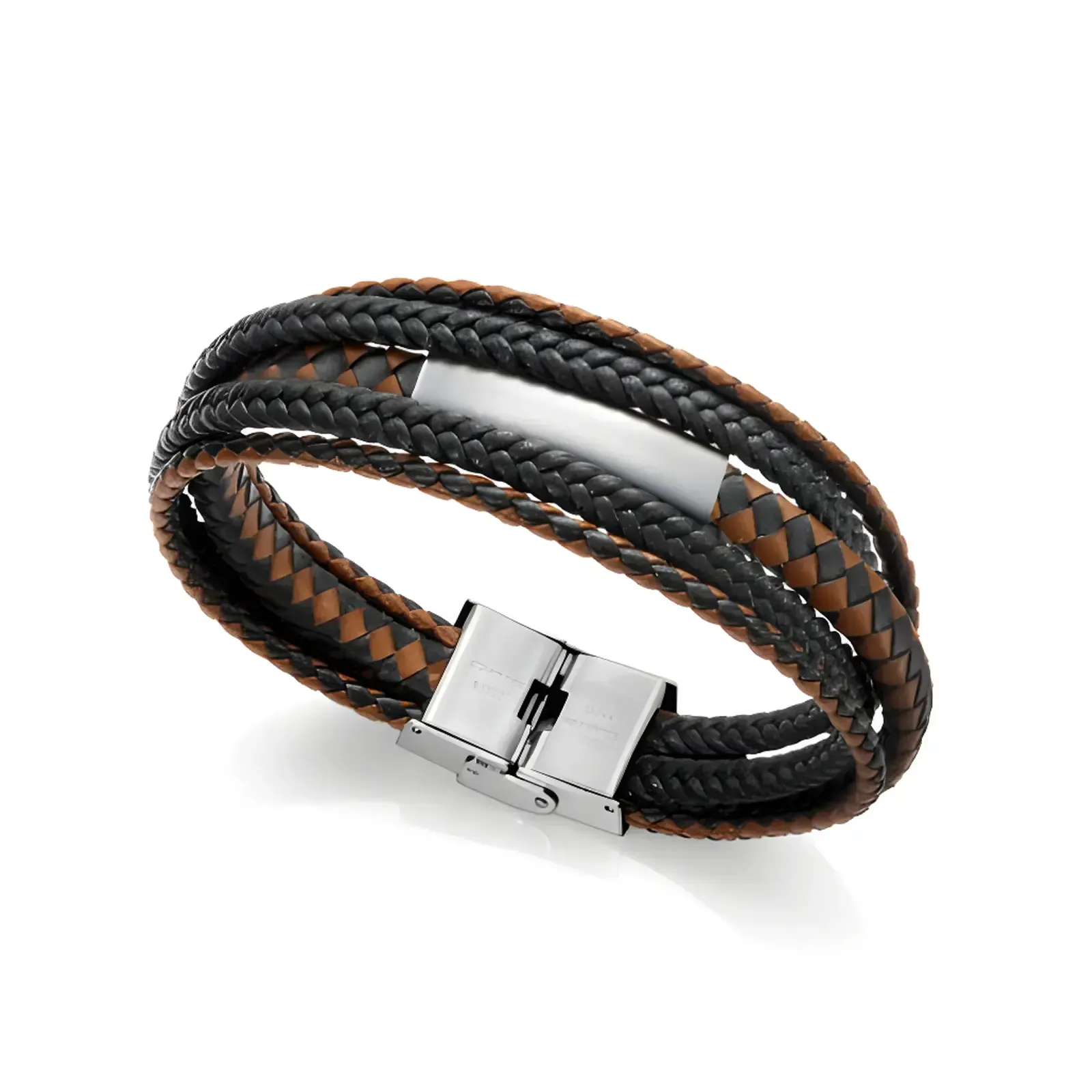 Viceroy-muotirannekoru (malli 75243P09011) on suunniteltu miehille, jotka haluavat erottua tyylillä ja sisällöllä. Rohkea yhdistelmä mustia, ruskeita ja hopeisia sävyjä, tämä rannekoru yhdistää hienostuneen nahan ja vankan ruostumattoman teräksen ilmeeseen, joka on sekä karu että hienostunut. 15 mm leveänä se tekee itsevarman vaikutelman olematta liioiteltu.