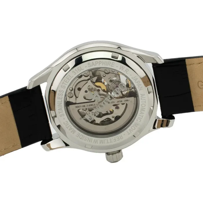 Itališko dizaino automatinis laikrodis iš Tecnotempo “Inside Matic” linijos su 40 mm nerūdijančio plieno korpusu ir baltu open-heart ciferblatu, atveriančiu mechanizmą. Įrengtas japonišku Miyota kalibru, safyro stiklu, karūnėle ir permatoma nugarėle. Derina patikimą veikimą ir rafinuotą dizainą. Papildytas juodos natūralios odos dirželiu, siūlo išskirtinį tradicijų ir šiuolaikinio meistriškumo balansą.