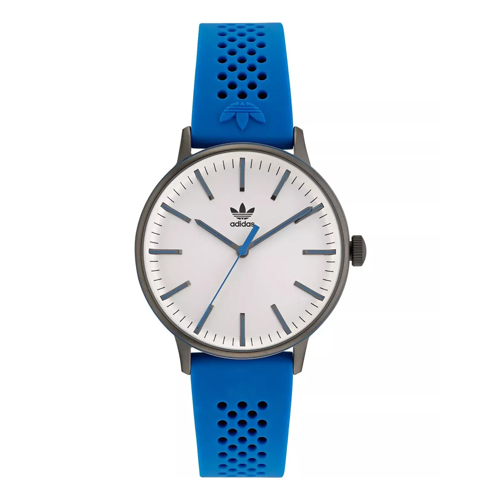 The Adidas Code One Blue Strap Watch combines style and resilience for any adventure. With its sleek black 38mm stainless steel case and bright blue silicone strap, this unisex watch makes a bold statement. Reliable quartz movement ensures accuracy, while 5ATM water resistance lets you dive into life’s moments fearlessly.