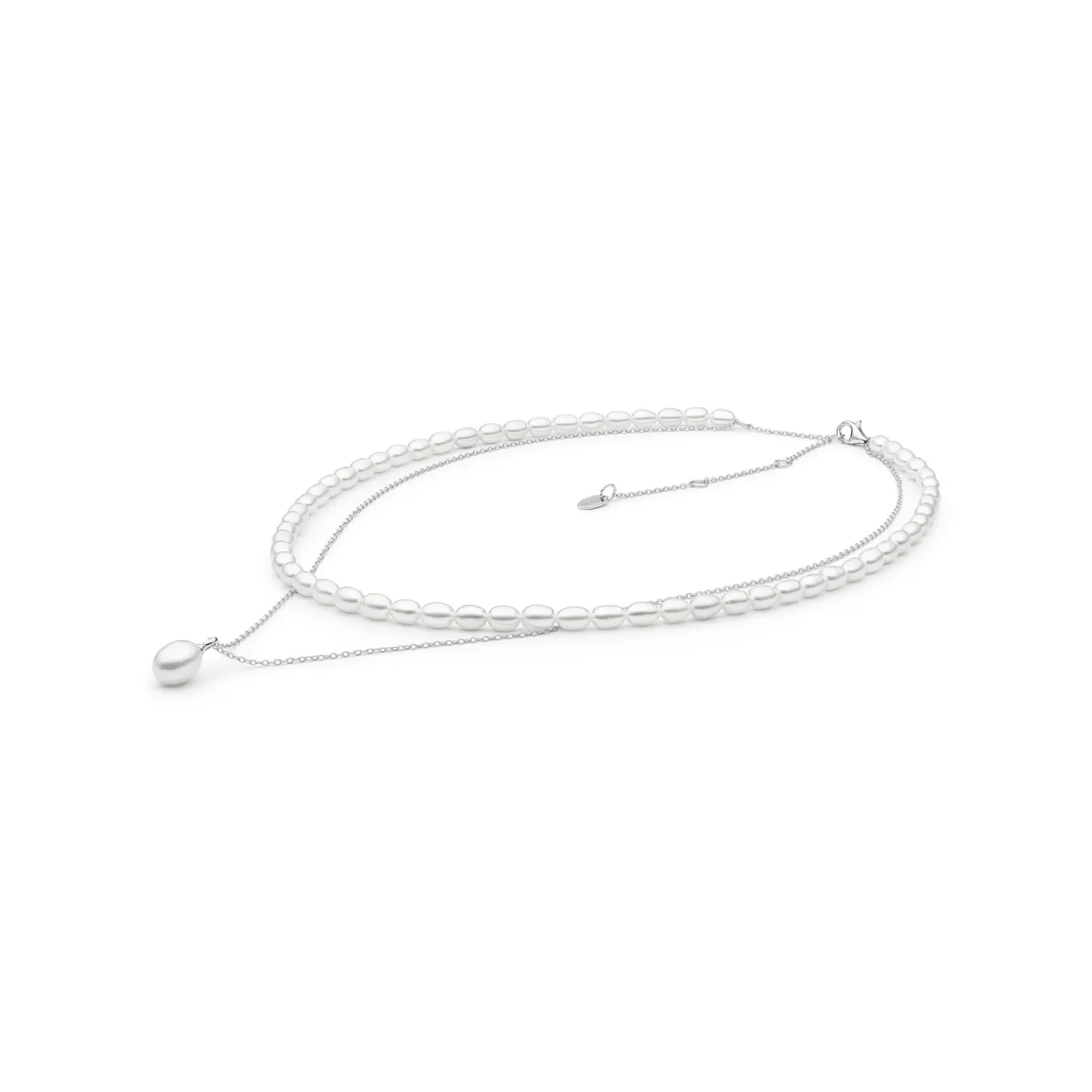 Crafted from lustrous freshwater pearls and rhodium-plated sterling silver, this 38mm piece offers timeless beauty. Perfect for complementing any outfit, it provides a sophisticated glow, making it a must-have accessory for every woman.