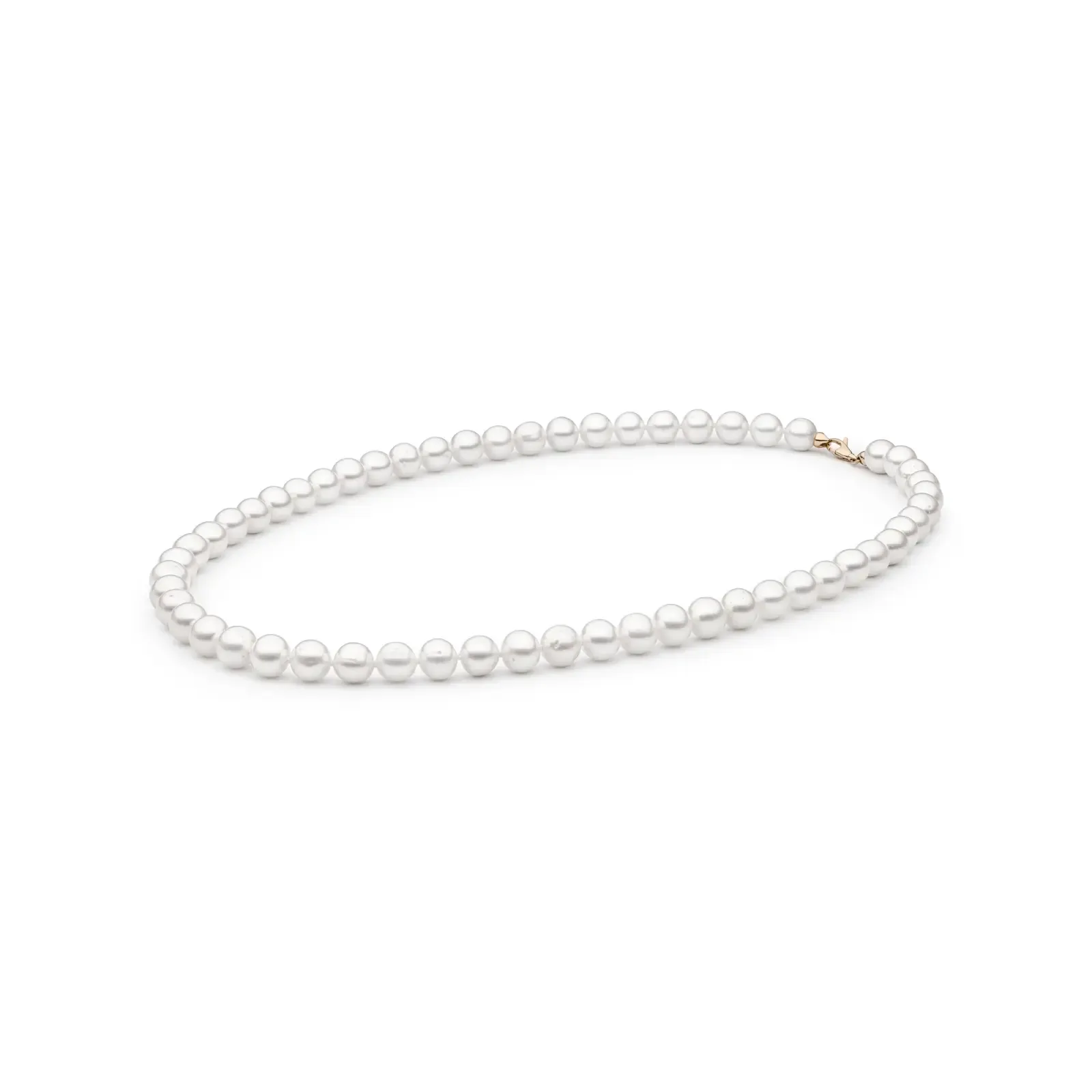 Elevate any outfit with Gaura’s stunning pearl necklace. Crafted with elegant freshwater pearls set in 14K rose gold, this piece adds a touch of sophistication to any look. At 50cm long, it sits perfectly on the neck. Ideal for ladies seeking timeless elegance with contemporary flair.