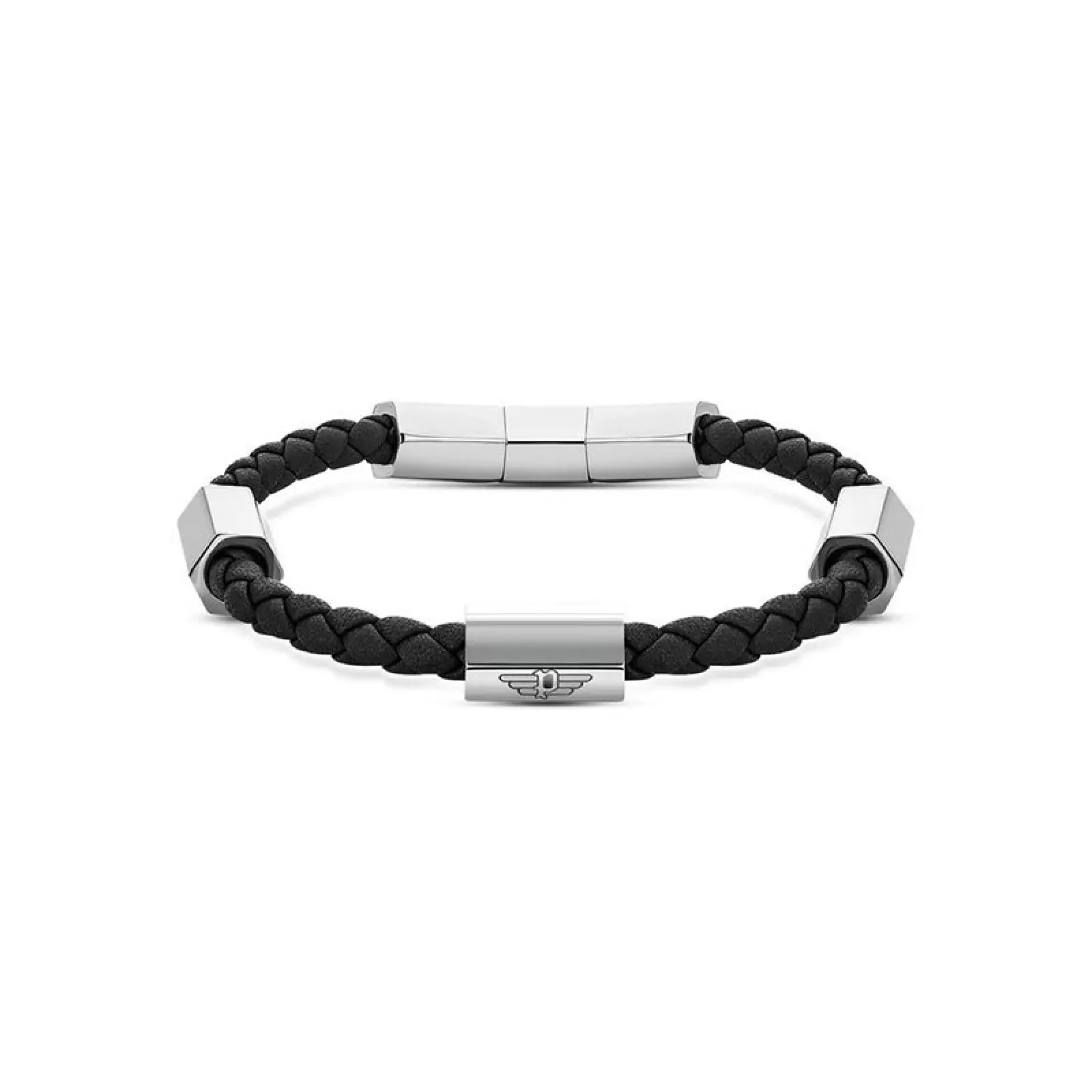 A masculine bracelet combining black leather and stainless steel with a sleek black-grey design. Durable and stylish, it offers a modern, versatile look perfect for everyday wear or as a refined gift.