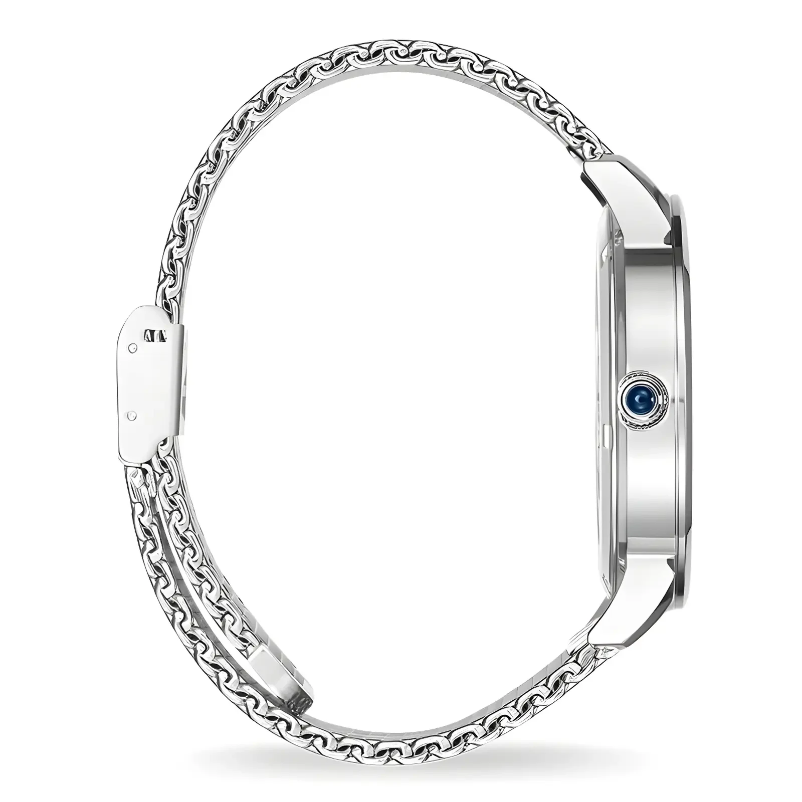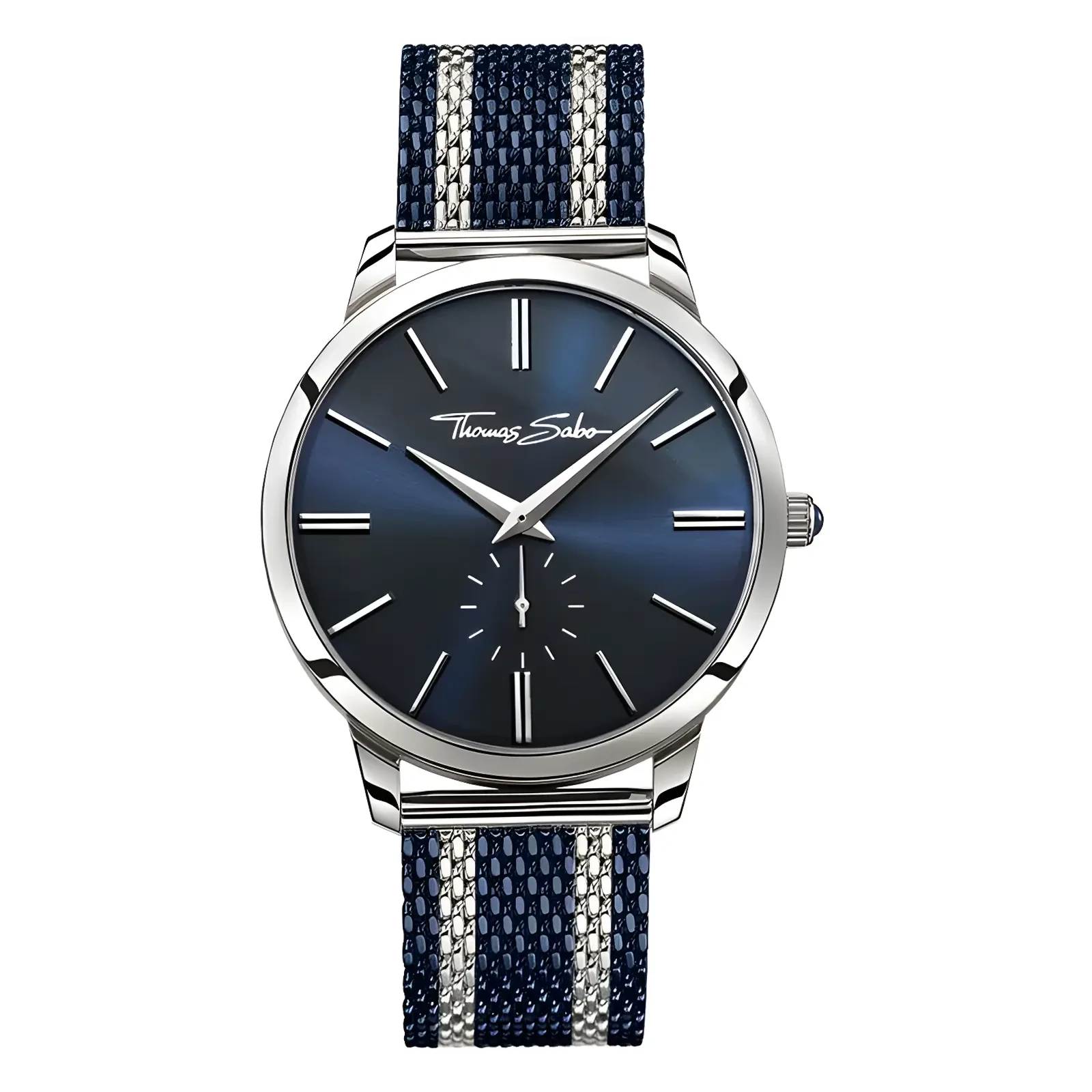 The Thomas Sabo WA0268 watch, crafted for modern men who demand sophistication. With a sleek 42mm stainless steel case, it merges elegance with durability. The striking silver and blue design, paired with reliable quartz movement, promises precision and flair, whether at work or play. Water-resistant up to 5 ATM, this watch ensures you’re ready for life’s adventures without compromising on style.