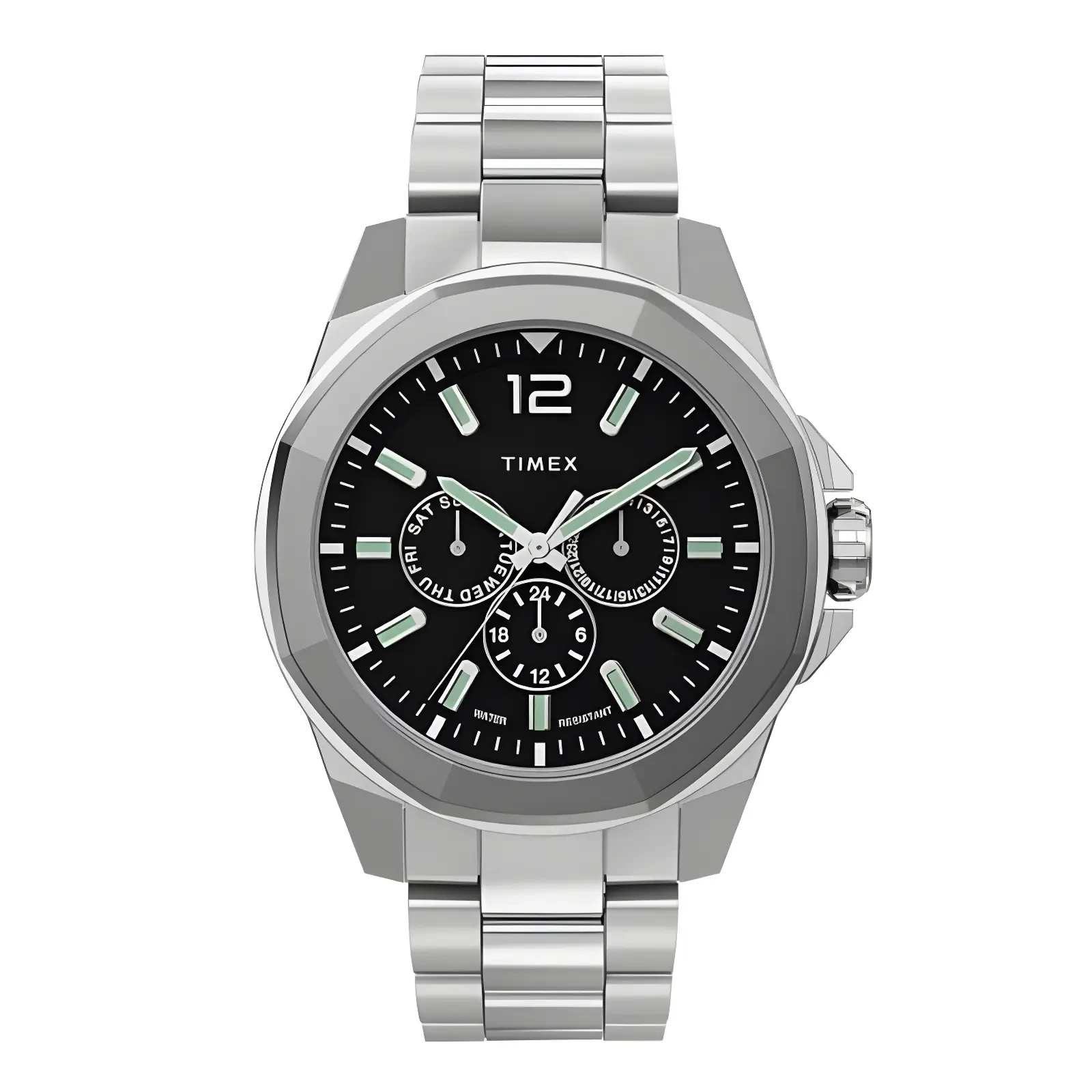 TIMEX Essex Avenue Watch makes time stylish with a sleek silver design. It’s durable, thanks to its stainless steel case and strap. Quartz movement ensures precision, while 5ATM water resistance allows worry-free wear. Perfect for daily elegance and practical use.