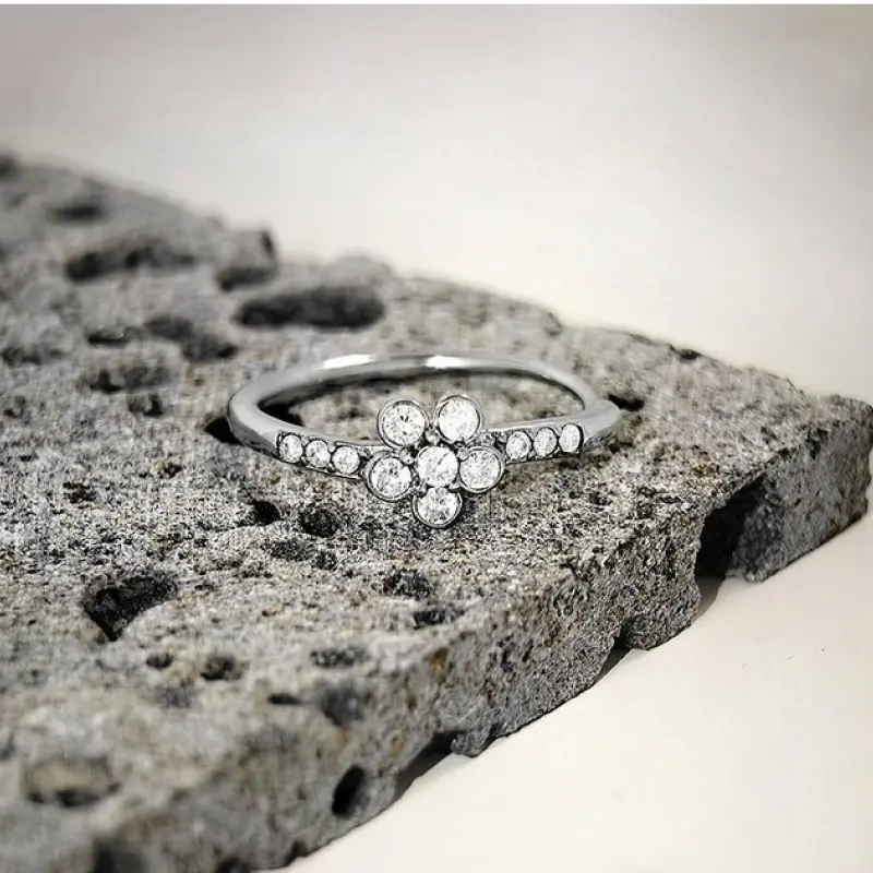 An elegant adjustable engagement ring crafted from premium 316L stainless steel with a sparkling zircon centerpiece. The polished finish enhances its shine, while the delicate flower-inspired design adds a timeless romantic touch. Adjustable to fit any finger size, it offers both elegance and comfort. Delivered with a box, making it a perfect symbol of love and an ideal gift choice.