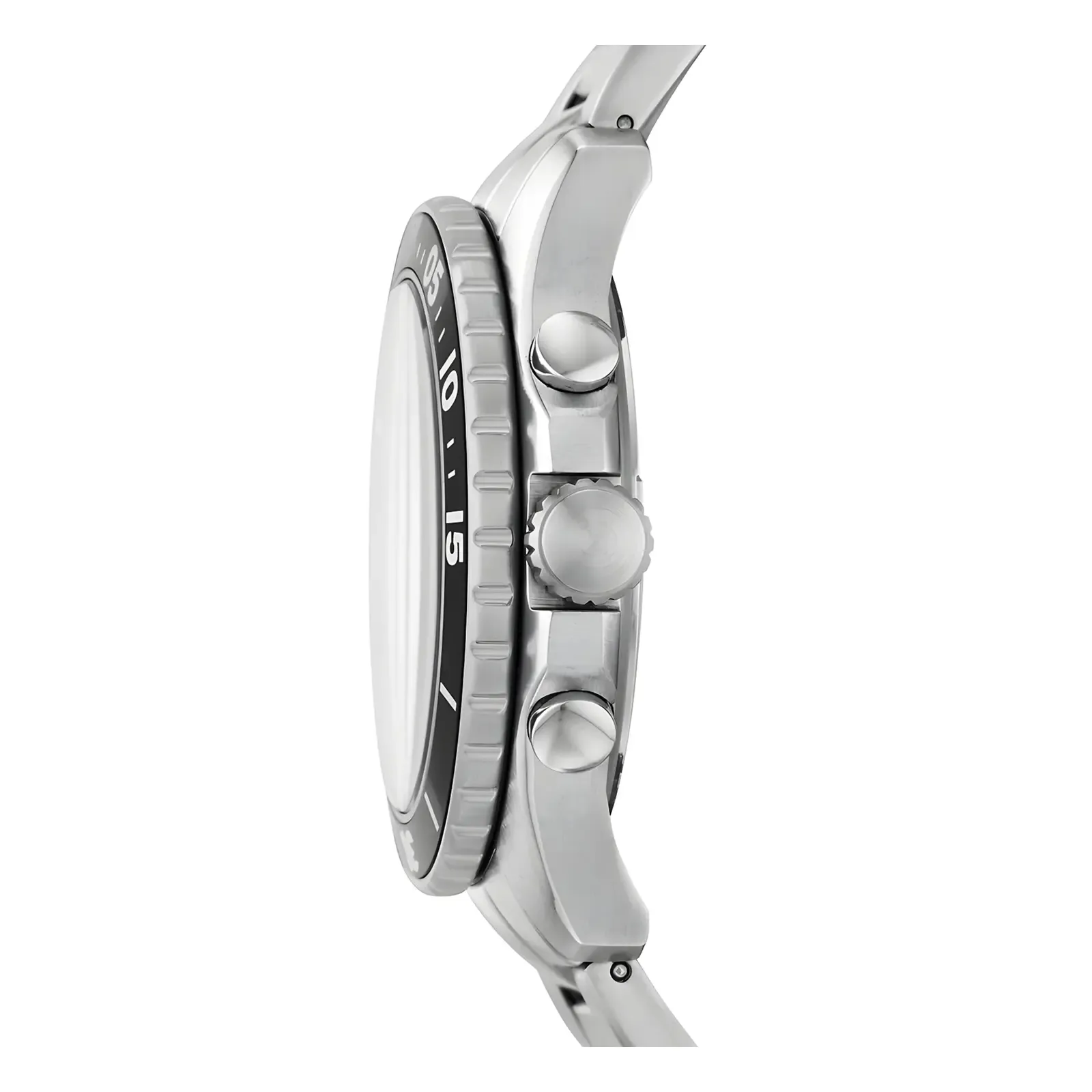 Timeless elegance with the Fossil FS5725 watch. Featuring a sleek 46mm stainless steel case and a sophisticated silver strap, it effortlessly complements any attire. Powered by reliable quartz movement and boasting 10ATM water resistance, this watch is perfect for daily adventures. Embrace style and functionality in one statement piece.