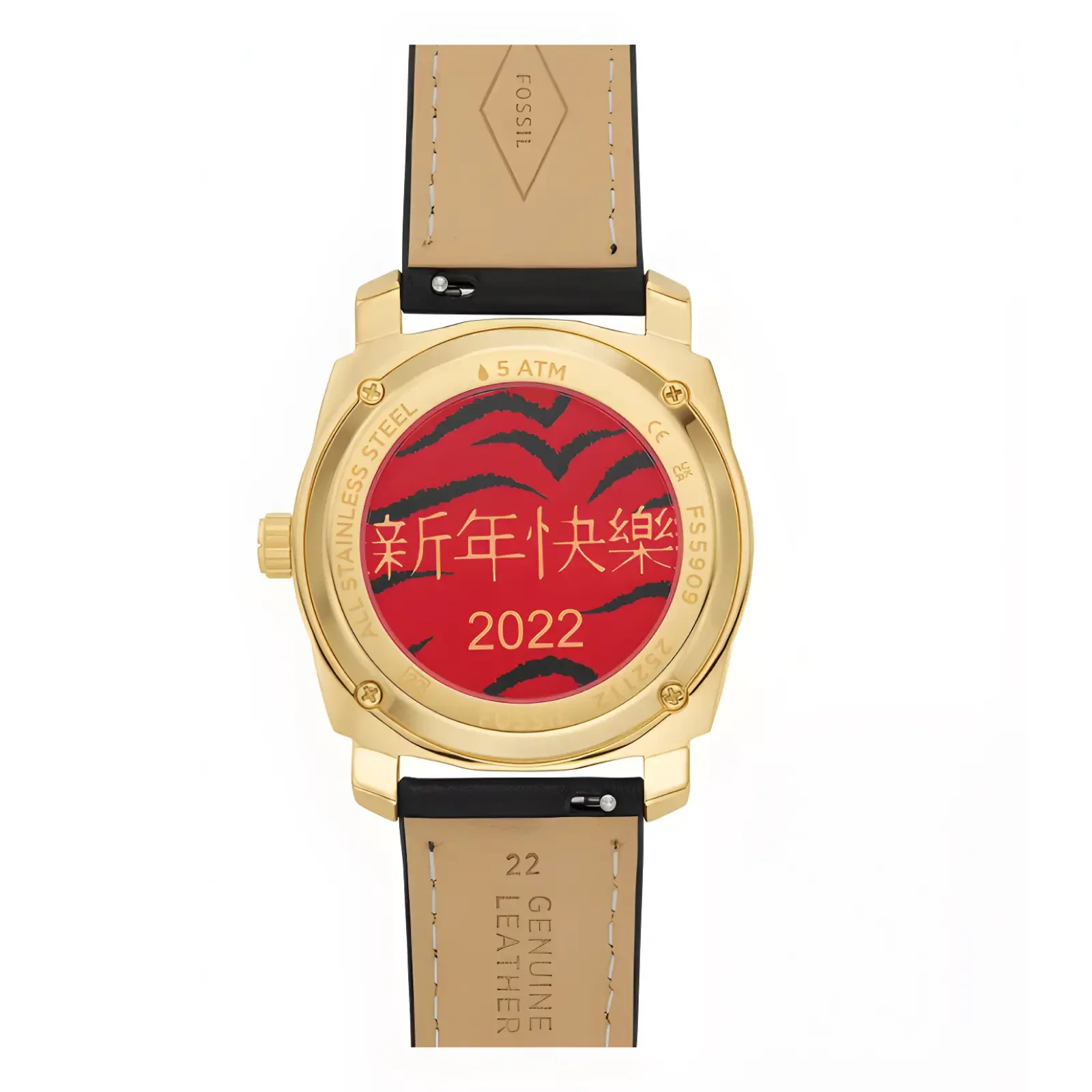 For those who dare to be different, this Fossil men’s watch combines style with function. The gleaming golden stainless steel case paired with a bold red dial showcases a striking design. Leather black strap adds comfort, while quartz movement ensures reliability. Dive into elegance with its 5ATM water resistance.