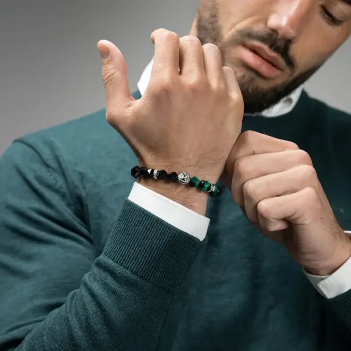 LION BRACELET FOR MEN – The lion head symbolizes power and strength, while the natural gemstones enhance this energy with a range of spiritual benefits. These stones are often used to restore balance, promote love, reduce stress, and align your chakras, helping you find purpose and maintain overall well-being.