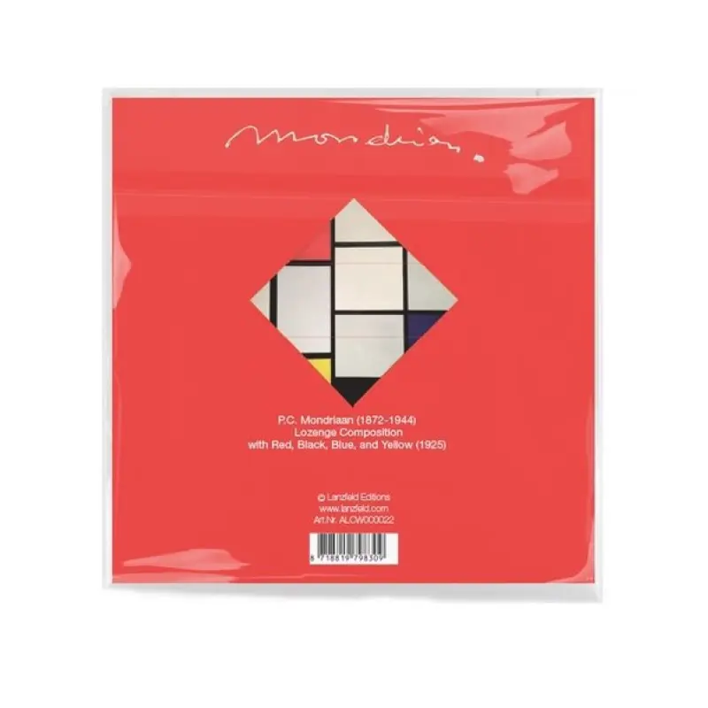A multifunctional microfiber cloth featuring Mondrian’s iconic geometric design, measuring 15 × 15 cm. Suitable for cleaning glasses, camera lenses, screens, jewelry, and more, it delivers a streak-free finish without scratching. Washable at 30°C for repeated use, it combines practicality with artistic style.