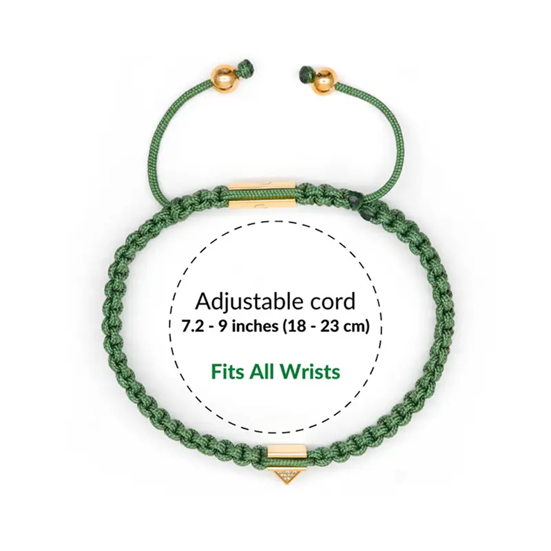 GT-COLLECTION Green Bracelet – Golden Pyramid with Zircon