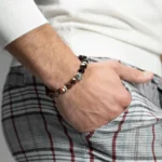 LÕVI KÄEVÕRU MEESTELE – Lõvi pea sümboliseerib jõudu ja väge, looduslikud kivid võimendavad seda energiat, aidates taastada tasakaalu, soodustada armastust, vähendada stressi ja tasakaalustada tšakraid.