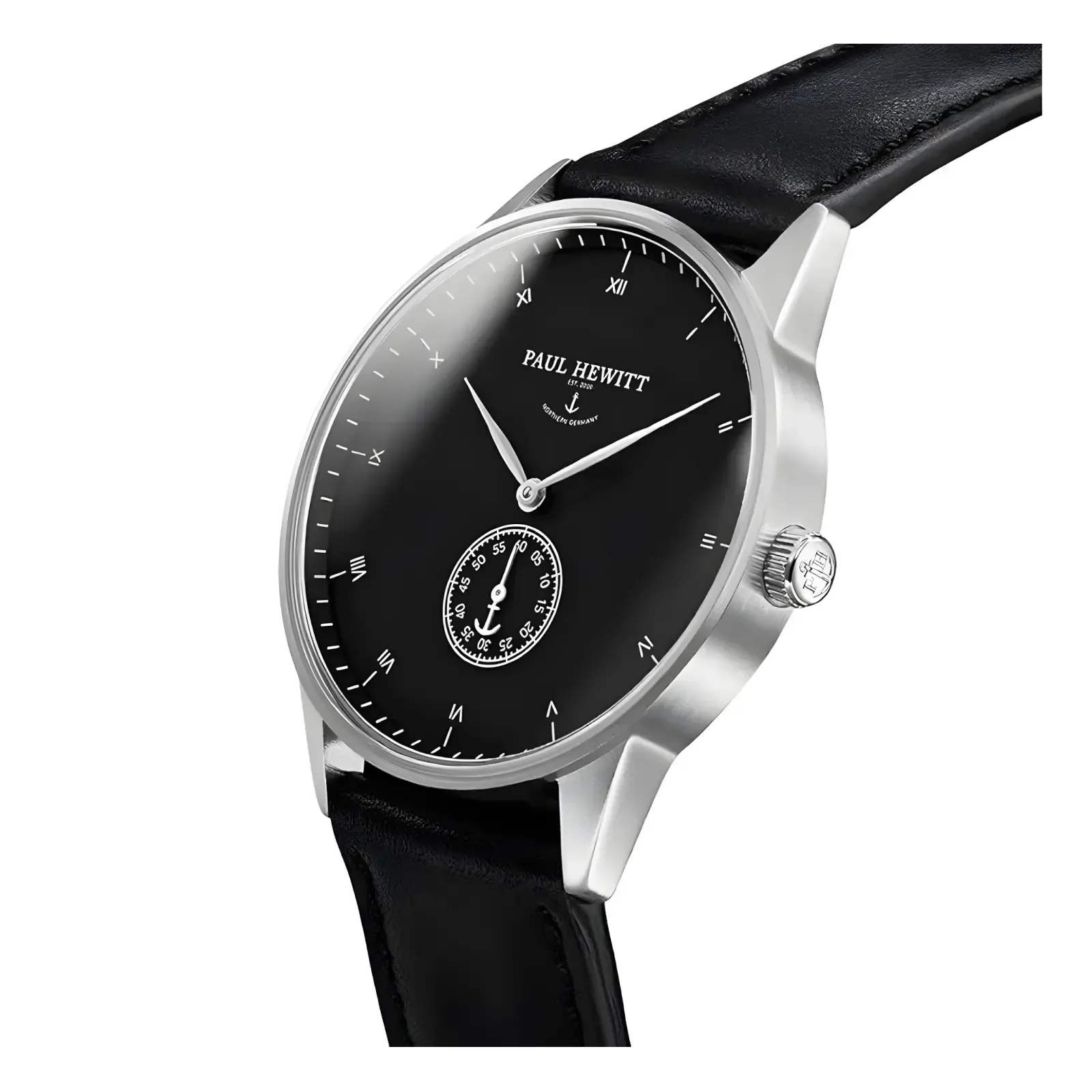 Paul Hewitt PH004755 meestekell, millel on elegantne 38 mm hõbedane roostevabast terasest korpus, mis on ideaalselt ühendatud musta nahkrihmaga. Selle usaldusväärne kvartskäik tagab täpse aja ning 5ATM veekindlus kindlustab vastupidavuse. Ideaalne valik tänapäevasele härrasmehele, kes otsib elegantsi ja funktsionaalsust ühes kellas.