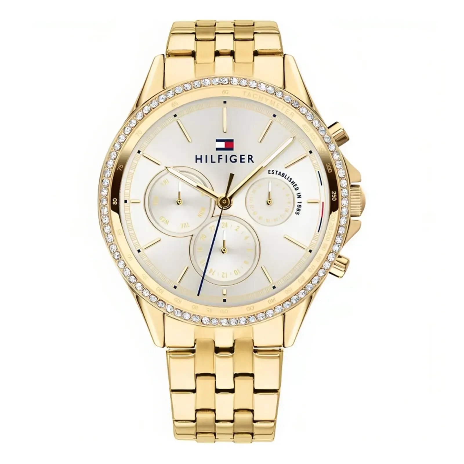 Tommy Hilfiger 1781977 on šikk ja mitmekülgne käekell, mis on loodud pidama sammu teie päevaga vaevatu stiilsusega. Valge numbrilaua ja särava kuldtooni roostevabast terasest rihmaga lisab see elegantsust nii ärirõivastusele kui ka nädalavahetuse riietusele. Selge analoogkuva sisaldab päeva ja kuupäeva aknaid – nii püsite organiseerituna ühe pilguga.