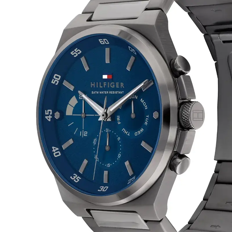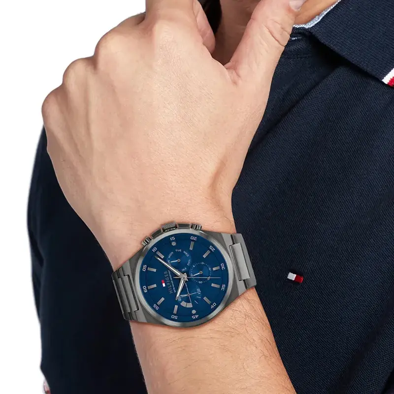 Julge meeste käekell Dexter kollektsioonist, suure tumehalli roostevabast terasest korpuse ja käevõruga, mis on ühendatud sügavsinise sihverplaadiga. Multifunktsionaalsed näidikud tagavad nii stiili kui ka praktilisuse, samas kui kaasaegne disain teeb sellest ideaalse valiku igapäevaseks, äriliseks ja smart-casual välimuseks.