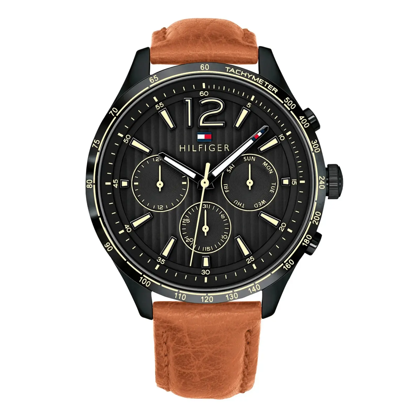 Tommy Hilfiger 1791470 Gavin kell ühendab ajatu stiili igapäevase funktsionaalsusega. Elegantne must numbrilaud koos valgete märgistega ja rikkaliku pruuni ehtsa nahkrihmaga pakub klassikalist välimust modernse nüansiga. Kell on loodud teie ajakavaga sammu pidama – analoogselt kuvatakse 24-tunni, päeva ja kuupäeva alamskaalad, mis muudab organiseerituse hoidmise stiilseks.