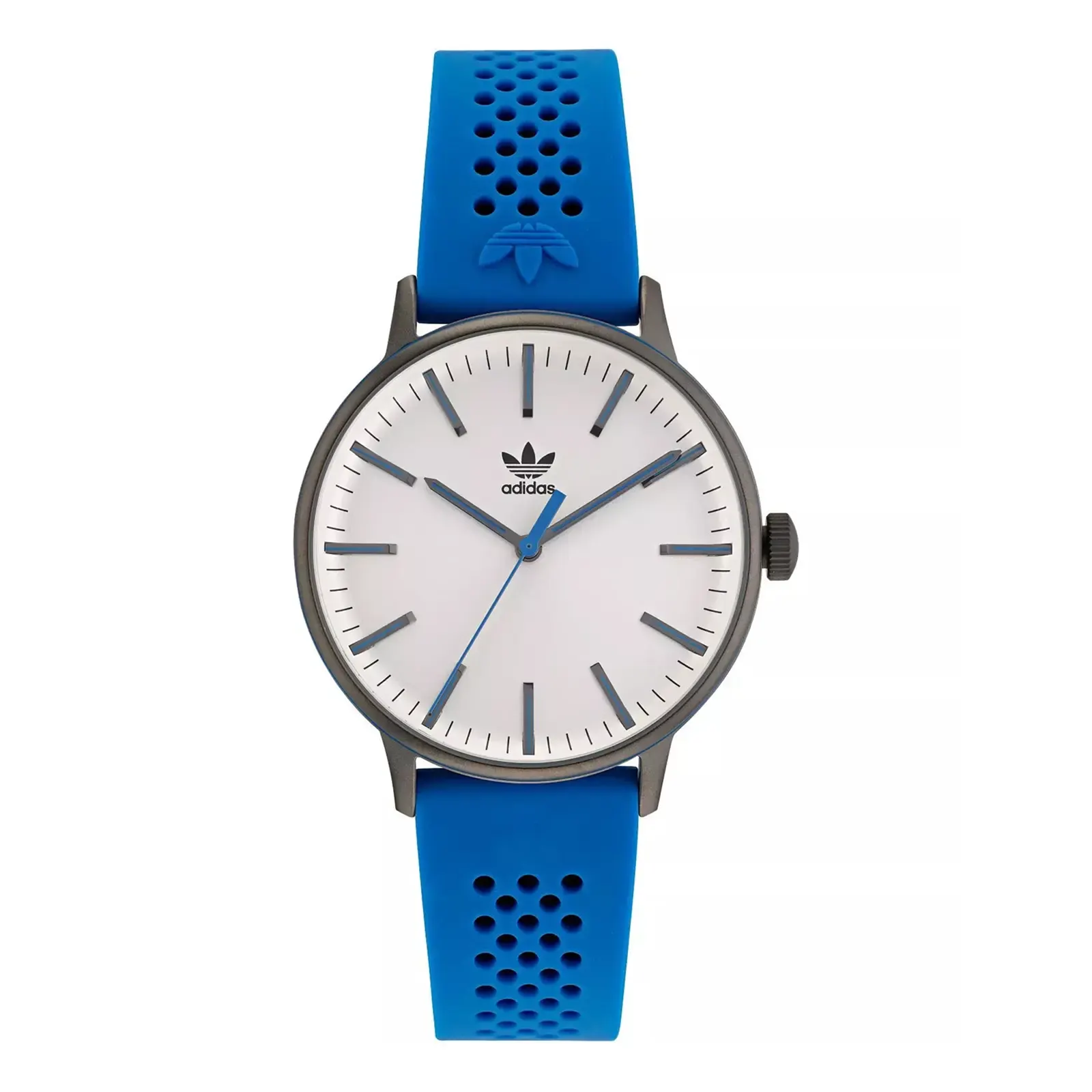 Adidas Code One Blue Strap Watch yhdistää tyylin ja kestävyyden jokaiseen seikkailuun. Sen tyylikäs musta 38 mm ruostumattomasta teräksestä valmistettu kotelo ja kirkkaan sininen silikoniranneke tekevät tästä unisex-kellosta rohkean valinnan. Luotettava kvartsikoneisto takaa tarkkuuden, ja 5ATM vedenkestävyys antaa sinun sukeltaa elämän hetkiin pelottomasti.