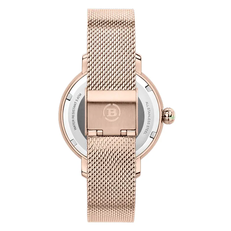Elegantti naisten kello Valentina Classic -mallistosta, valmistettu ruusukullasta ja yhdistetty Milanon verkkorannekkeeseen. Ajattoman muotoilun ja modernien yksityiskohtien yhdistelmä tekee siitä monipuolisen asusteen sekä arkeen että bisnestyyliin, tarjoten lisämukavuutta ja joustavuutta vaihdettavien rannekkeiden ansiosta.