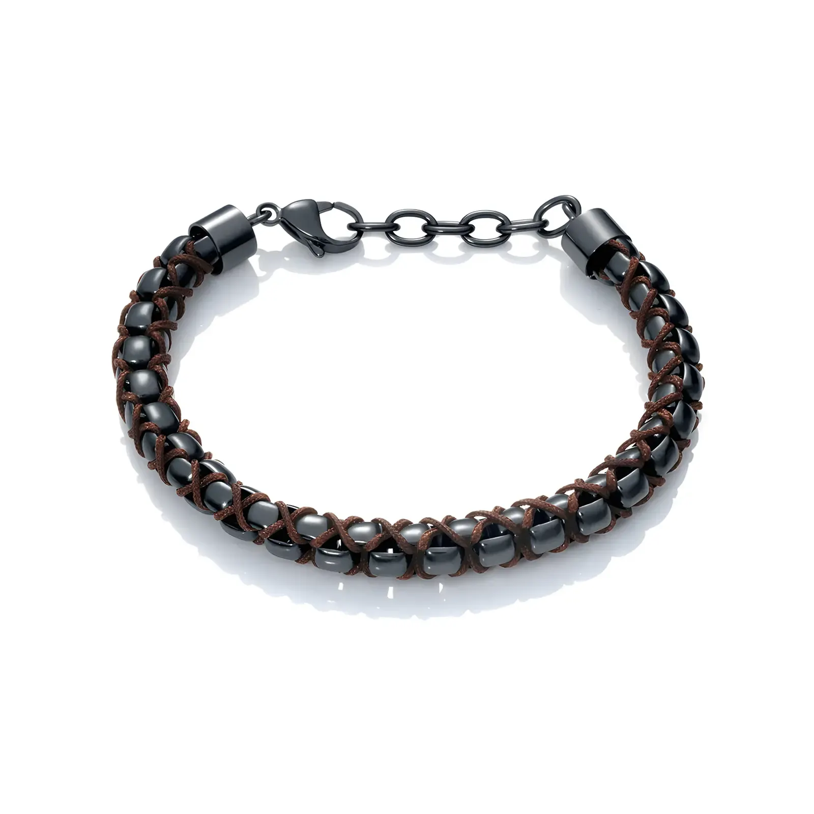 „VICEROY Acero“ juoda apyrankė – tai išskirtinis gaminys, kuriame modernios medžiagos dera su nesenstančiu patrauklumu. Juodo nerūdijančio plieno ir ryškios rudos spalvos tekstilės derinys suteikia jai tvirtą, tačiau rafinuotą išvaizdą, kuri išsiskiria netriukšmingai. Ši apyrankė sukurta vyrui, kuris kasdieniuose aksesuaruose vertina ir patvarumą, ir stilių.