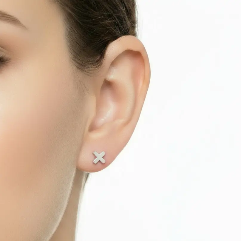 Minimalist stud earrings in the shape of an “X,” crafted from stainless steel. Measuring 5 mm. They make a sleek and versatile everyday accessory.