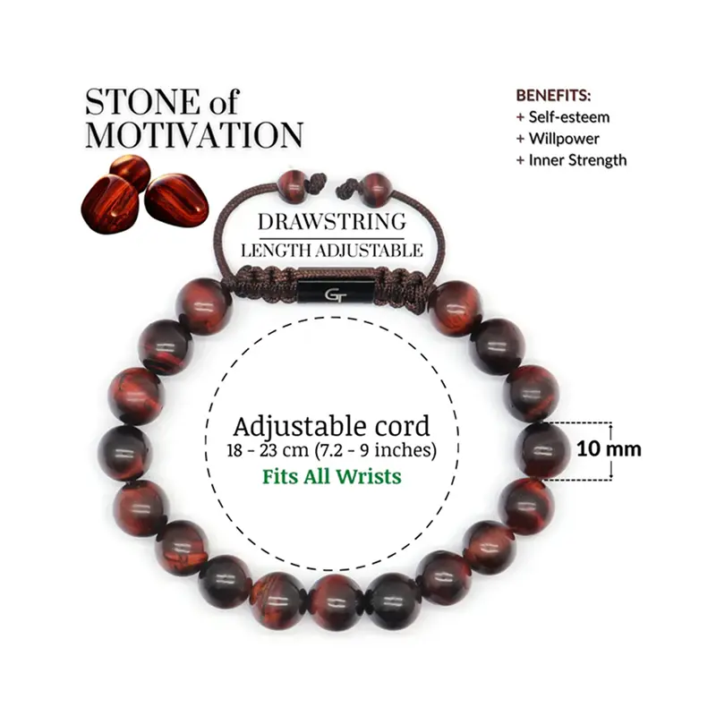 GT-COLLECTION Red Tiger Eye Beaded Bracelet