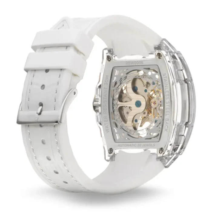 Женские автоматические часы с лёгким пластиковым корпусом и удобным белым силиконовым ремешком. Созданные для активного образа жизни, они сочетают спортивную элегантность с практичностью на каждый день. Работают на автоматическом механизме без батарейки, предлагая современный стиль и лёгкость в использовании.