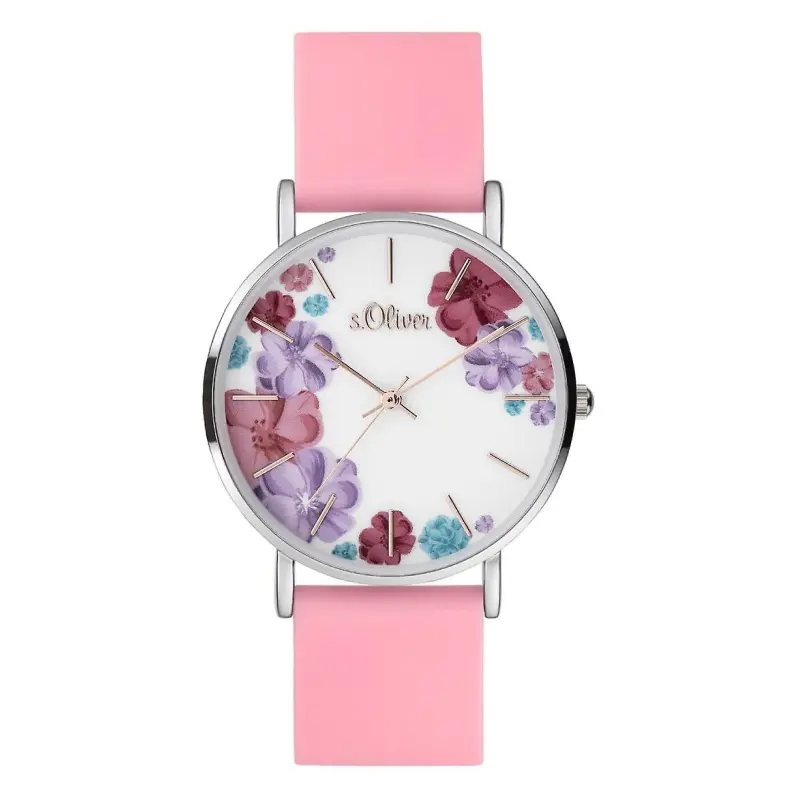 Стильные женские часы с корпусом из нержавеющей стали и мягким розовым силиконовым ремешком для лёгкого комфорта. Циферблат украшен нежным цветочным принтом, добавляющим женственности в элегантный дизайн. Оснащённые надёжным кварцевым механизмом, они являются универсальным аксессуаром для повседневного ношения, сочетающим стиль и практичность.