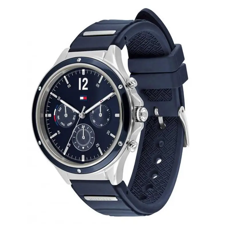 Стильные женские часы со спортивным, но универсальным характером, выделяющиеся полностью синим дизайном и многофункциональными возможностями. Сочетая повседневную практичность с атлетичным акцентом, они органично вписываются как в активный образ, так и в офисный стиль. Лёгкие и эргономичные, они становятся ярким дополнением коллекции Tommy Hilfiger Eve.