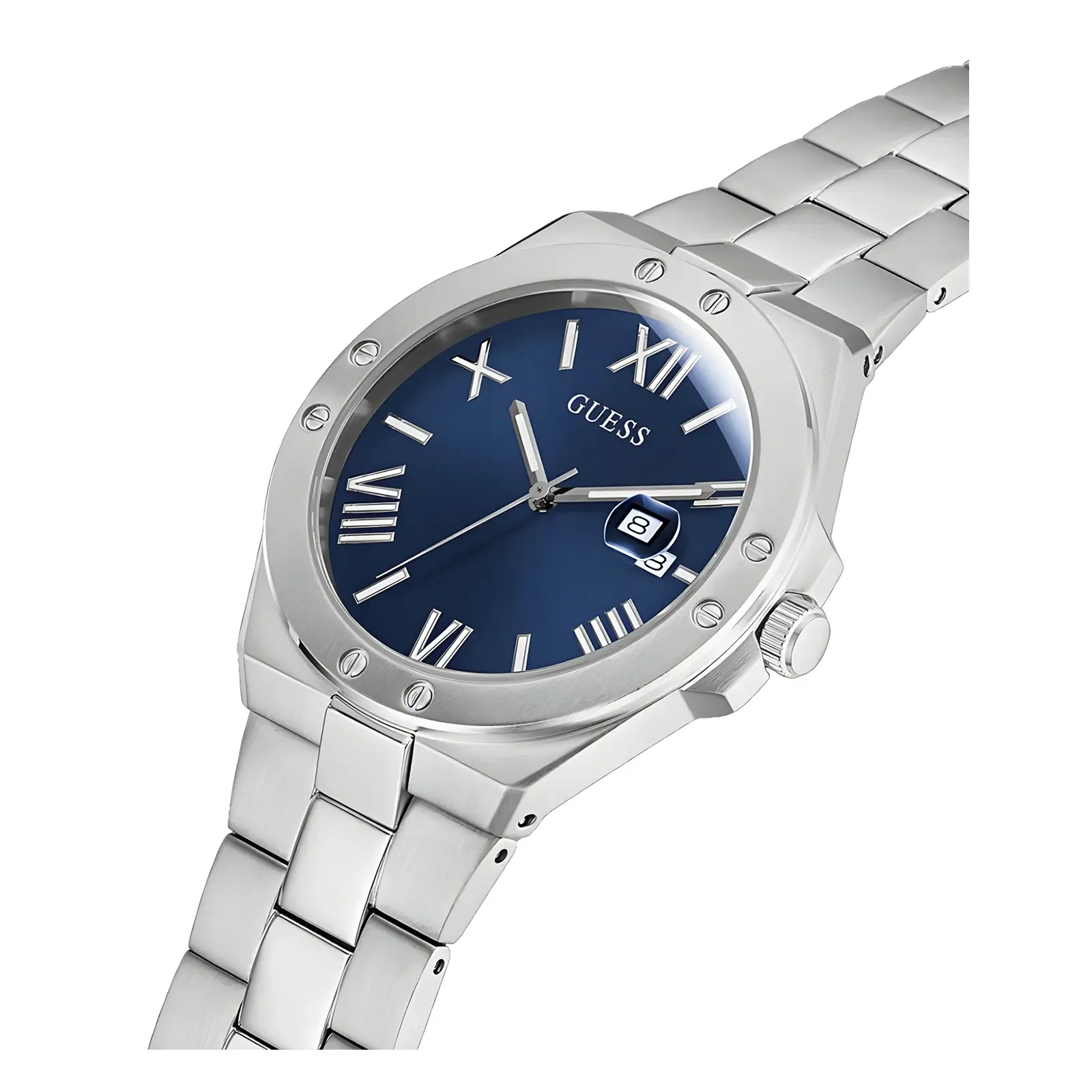 Höj din stil med Guess GW0276G1 herrklocka. Dess eleganta silverfärgade rostfria stål förbättrar hållbarheten och den moderna elegansen, perfekt för dagligt bruk. Med precis kvartsrörelse säkerställer denna klocka pålitlig noggrannhet. Dessutom, med 3ATM vattentålighet, är den redo för alla äventyrliga stänk.