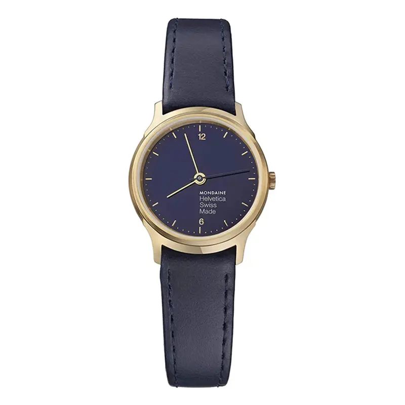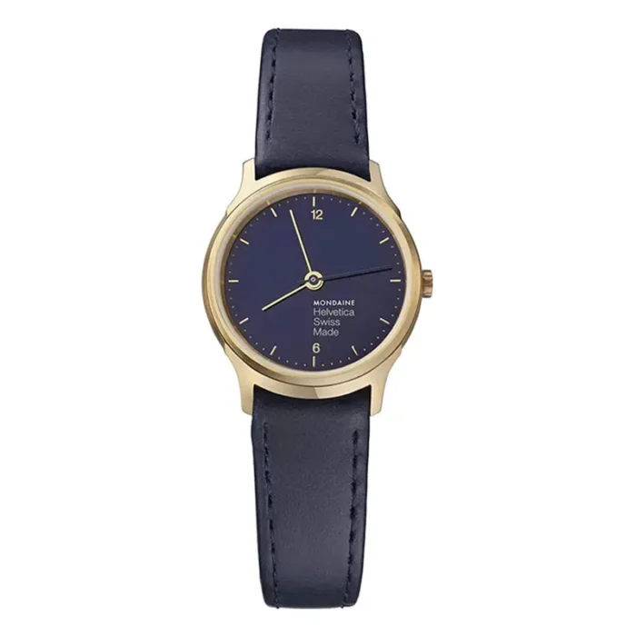 En elegant damklocka från Helvetica Light-kollektionen, designad för dem som värdesätter schweizisk precision och minimalistisk stil. Med en raffinerad blå-och-guld färgkombination, ett pålitligt kvartsurverk och hållbart safirglas förenar den sofistikering med vardaglig praktikalitet.