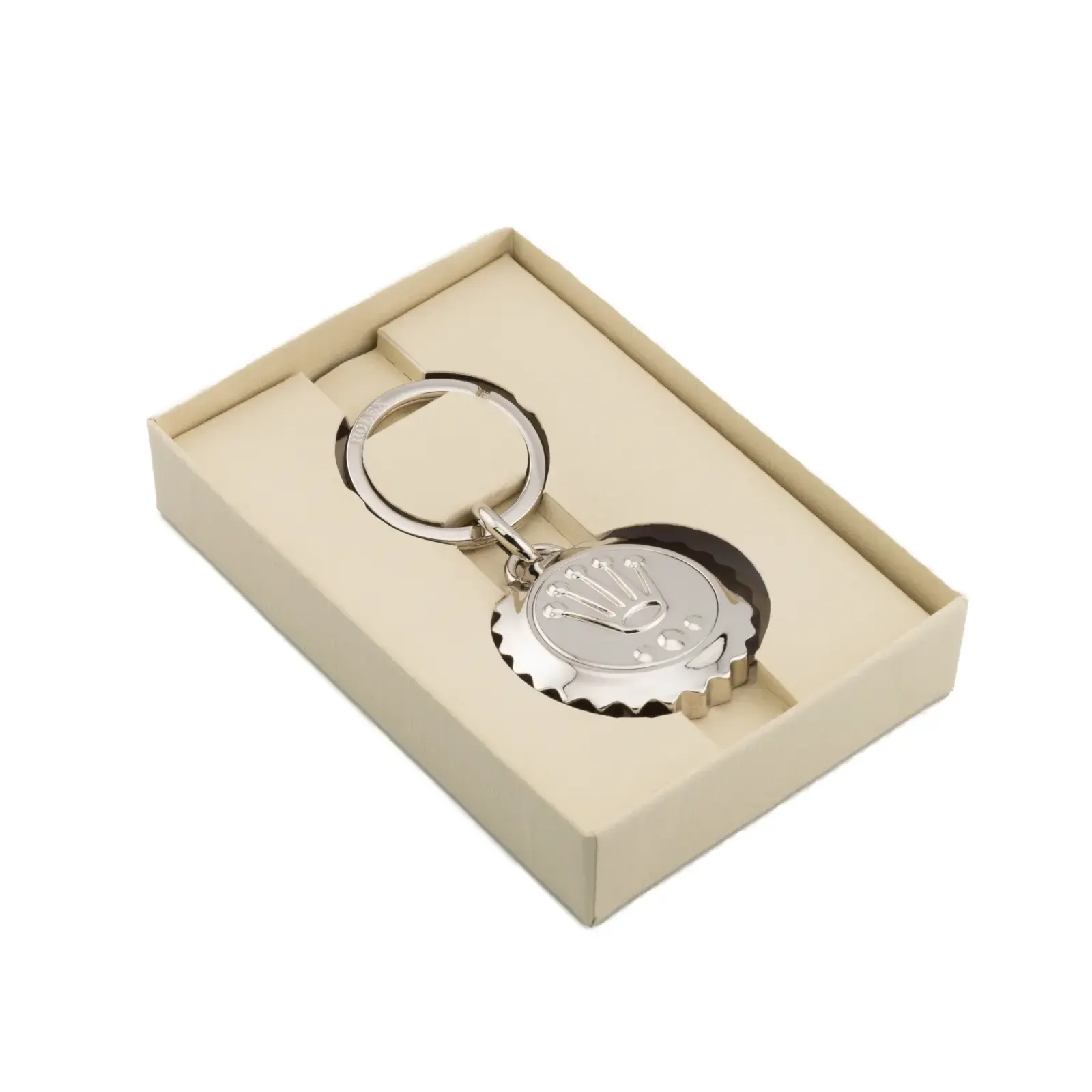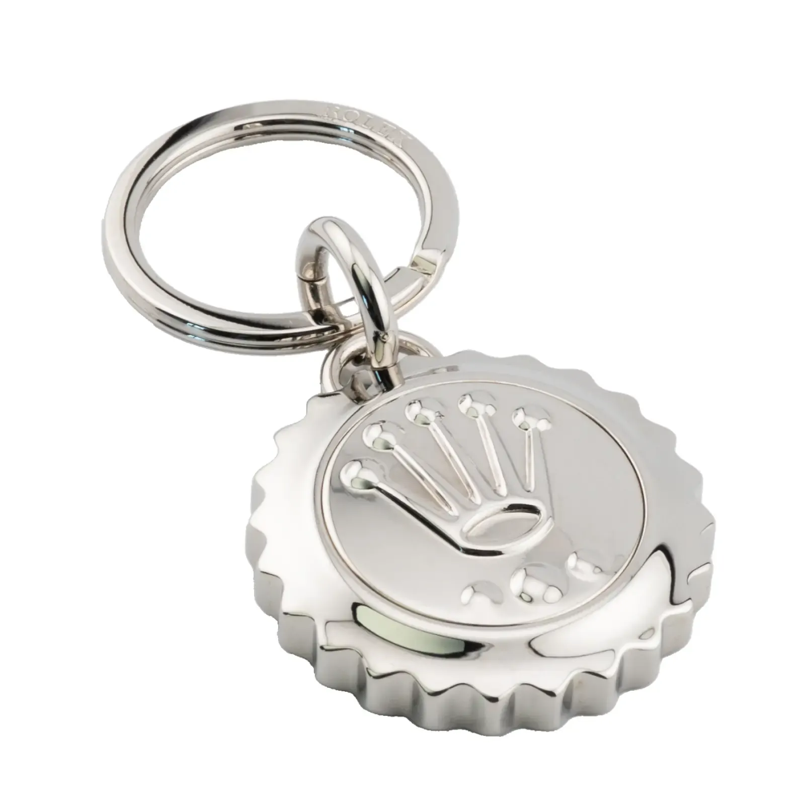 Rolex sällsynta nyckelring – Submariner-kronan är en samlares dröm: tillverkad av Rolex signatur 904L rostfritt stål och designad efter den ikoniska Triplock-kronan som finns på Submariner-modeller. Denna nyckelring i begränsad upplaga, som ursprungligen släpptes exklusivt på Baselworld 2011–2012, är en ultrasällsynt produkt som få någonsin kommer att ha möjlighet att äga.